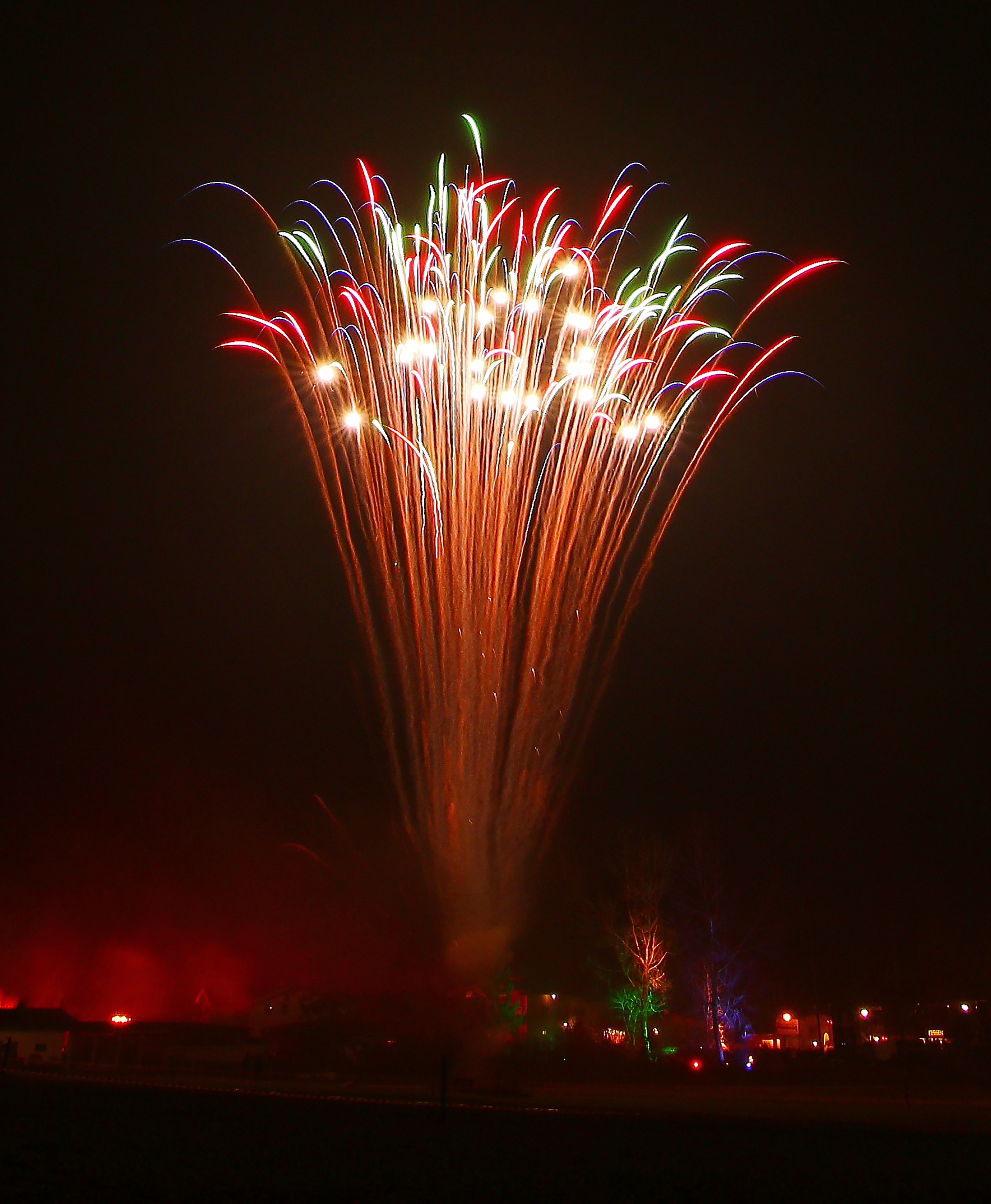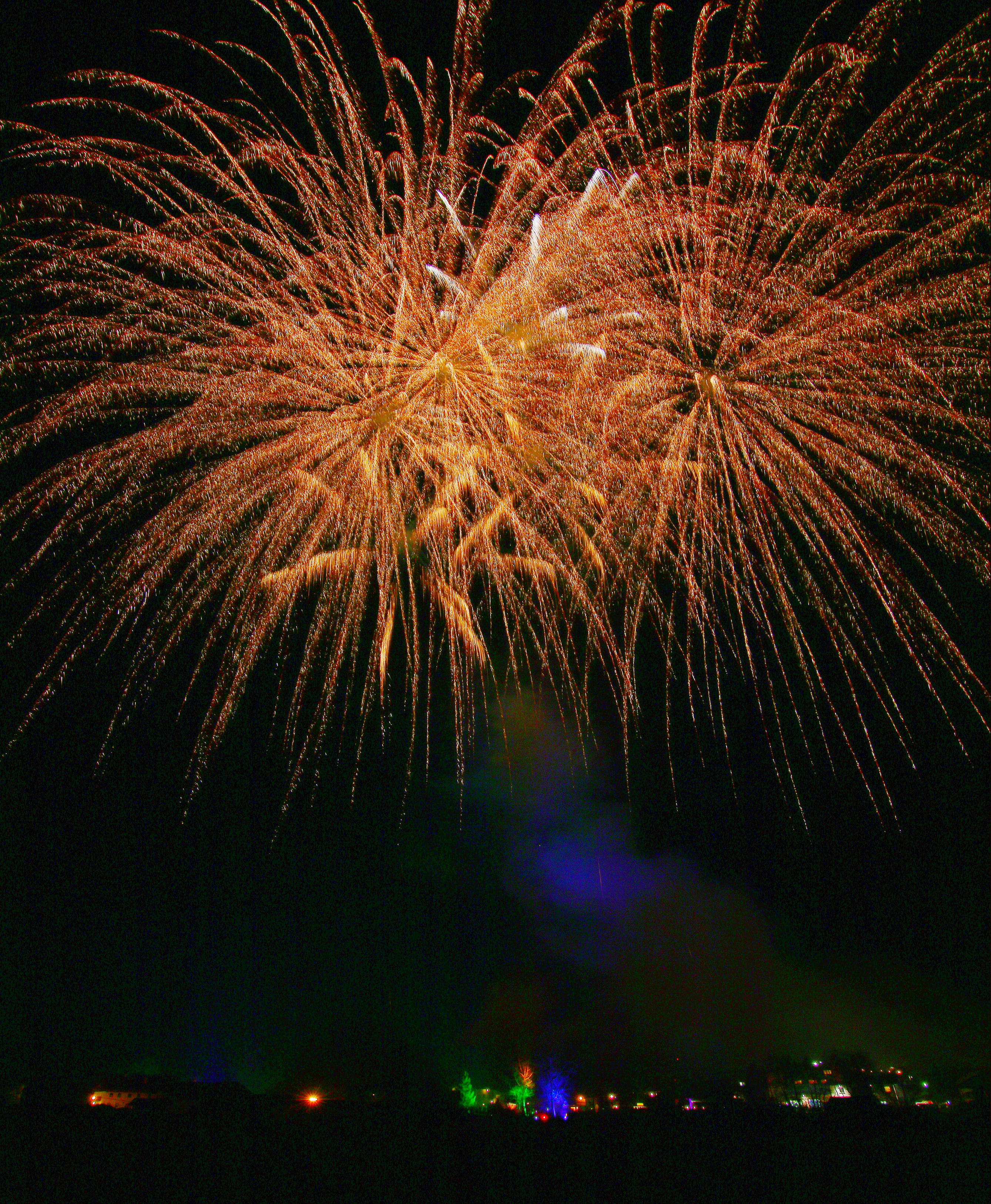 Feuerwerk mit Effekten bis 150m Steighöhe, wobei meist Bodeneffekte, Fontänen und Batterien mit bis zu 80m Steighöhe zur Verwendung kommen. Gekrönt von Kugelbomben mit 75-100mm Durchmesser als Finale!